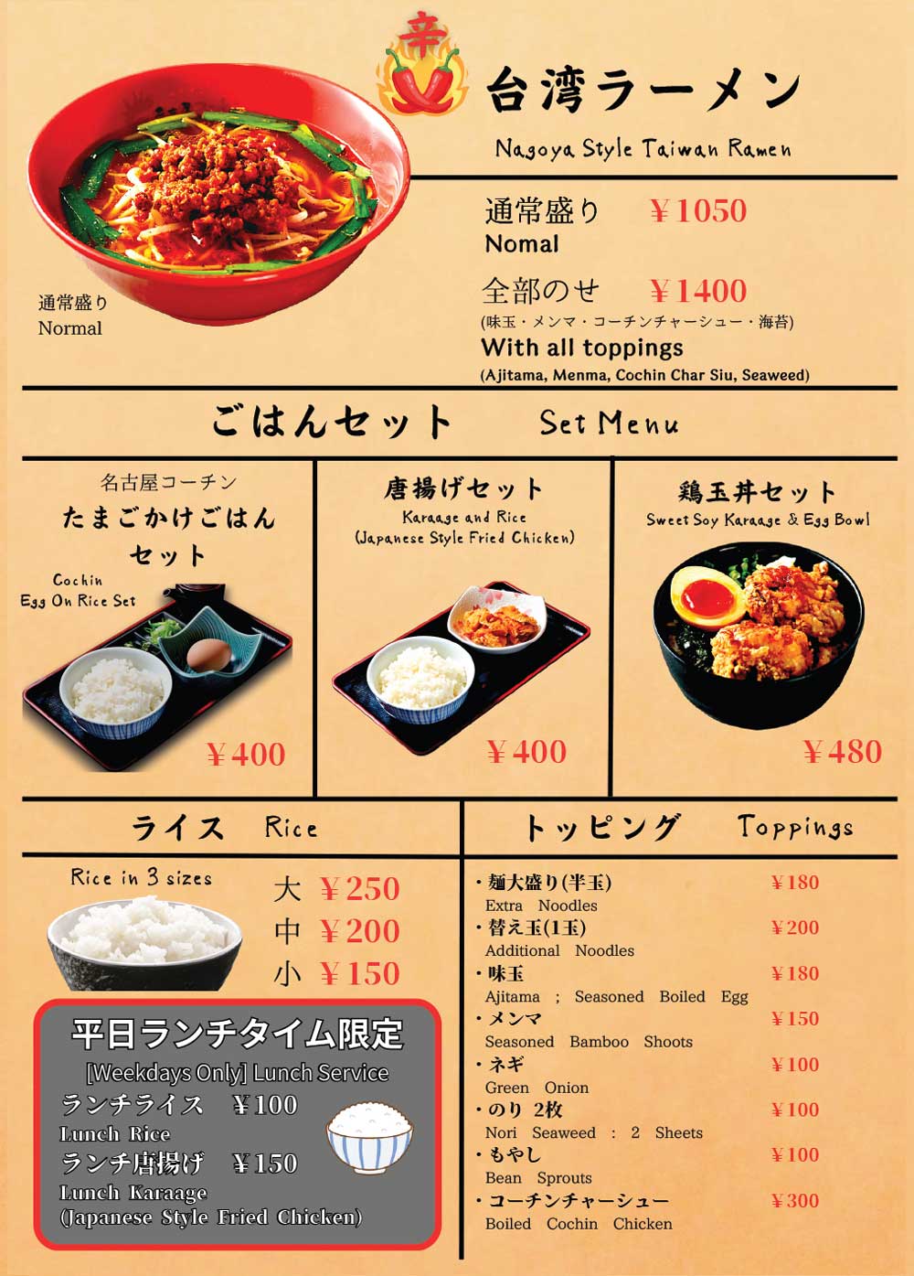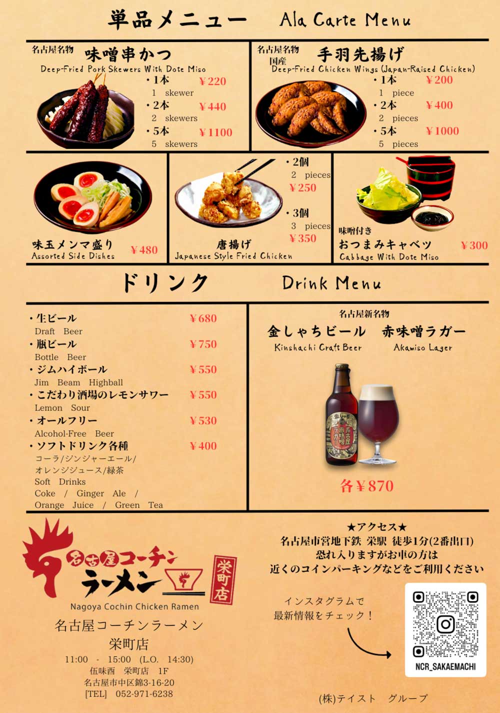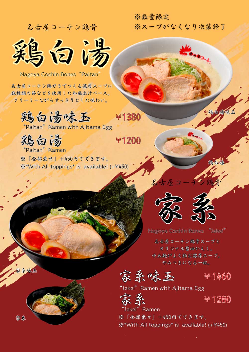 名古屋コーチン使用のラーメンはもちろん、名古屋のおもてなしもぜひ、堪能してください。